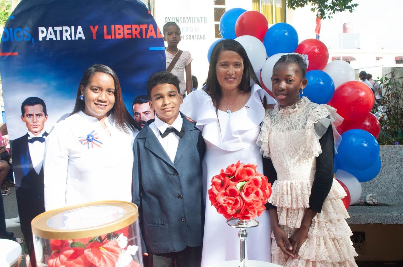 Con profundo orgullo patrio, nuestra alcaldesa Santa Valdez participó en la conmemoración del natalicio del patricio Matías Ramón Mella, celebrada en el Politécnico Matías Ramón Mella de nuestro municipio.
