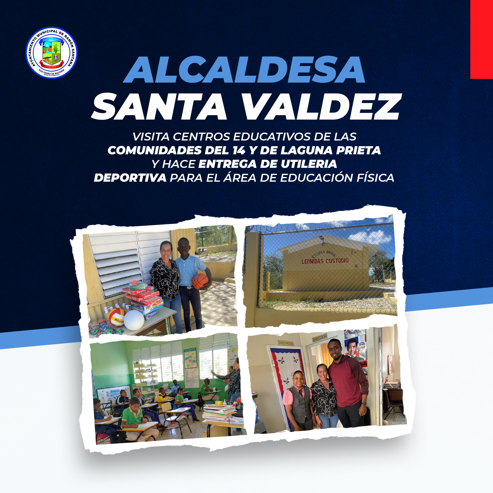 Nuestra alcaldesa Santa Valdez visita centros educativos de las comunidades del 14 y de Laguna prieta y hace entrega de utilería deportiva para el área de educación física.