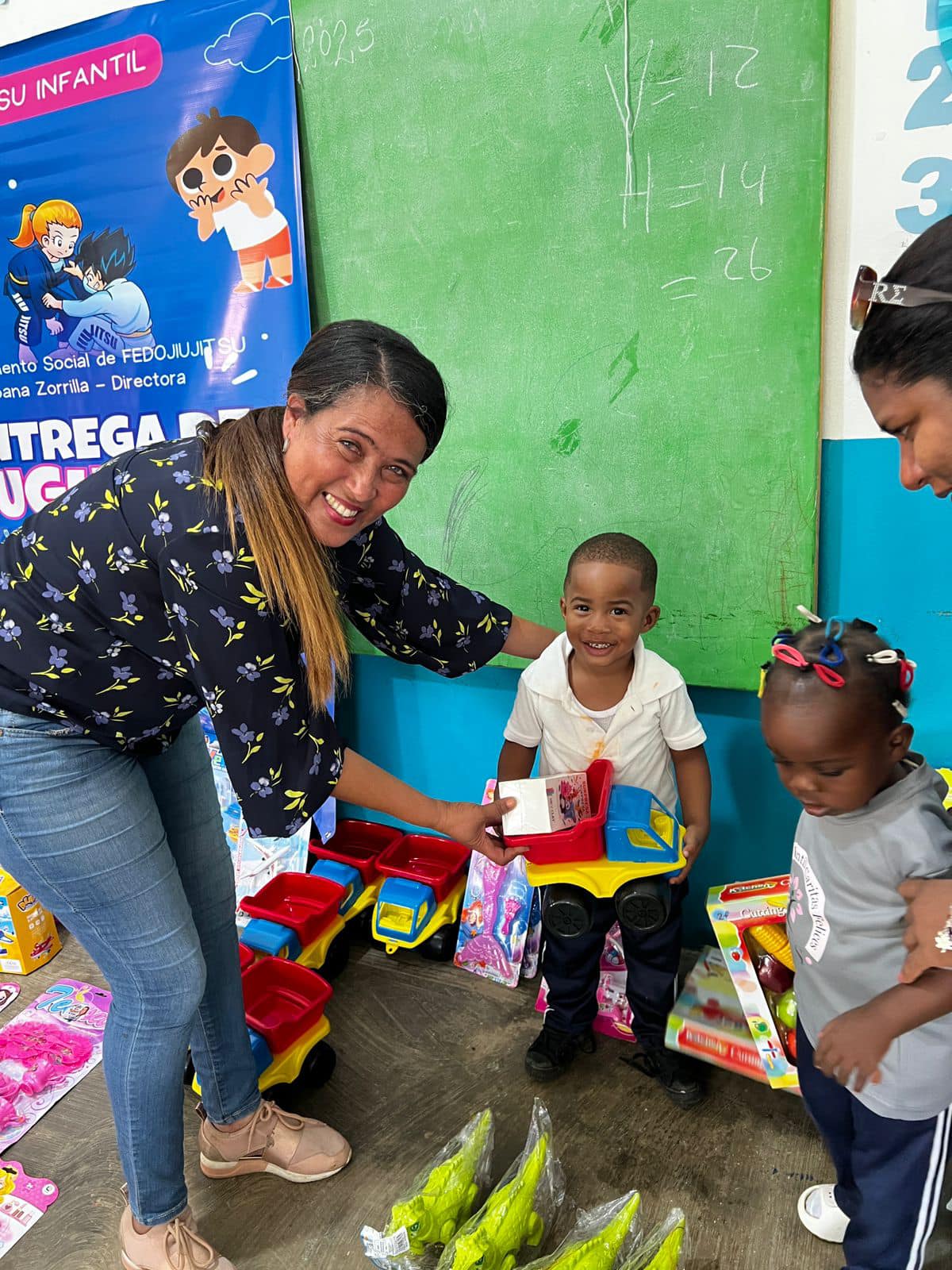En esta actividad realizada en la Estancia Infantil Carita Felices de la Asociación de Mujeres Solidarias #AMUS, los niños también disfrutaron de una exhibición de Jiujisut Infantil por parte de la Federación Dominicana de Jiujisut, presidida por Fausto Peña.