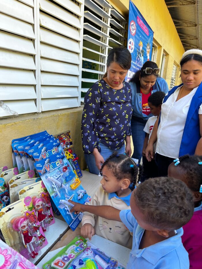 Alcaldesa Santa Valdez continúa llevando alegría a los niños de las comunidades, en el día de ayer visitó la escuela básica de Paso del Medio junto a la Federación Dominicana de Jiujisut presidida por Fausto Peña para hacer la entrega de juguetes.